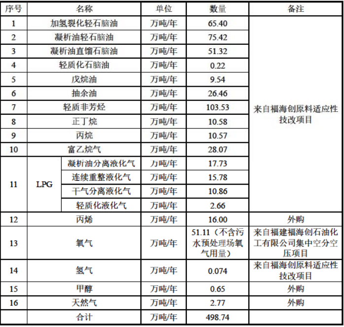 主要原料:本項目以福海創原料適應性技改項目提供的石腦油、戊烷油、抽余油、正丁烷、丙烷等為原料,通過蒸汽裂解方式生產乙烯,進而延長產品鏈,生產下游石化產品。