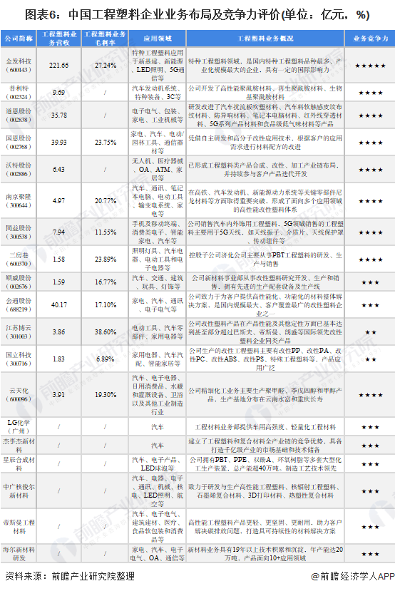 4、中國工程塑料行業企業布局及競爭力評價