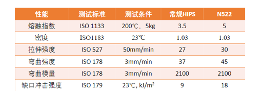 比起傳統HIPS,N522熔指更高,加工窗口寬,成型周期短,當市場需求暴增的時候,N522能更快搶占市場。