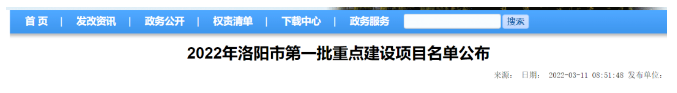 關于項目具體內容未見具體報道,但是,3月11日,洛陽市發改委公布《2022年洛陽市第一批重點建設項目名單》。