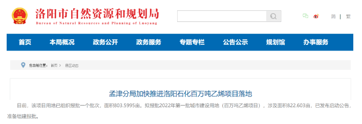 3月28日,洛陽市孟津區人民政府對中石化洛陽分公司百萬噸乙烯項目社會穩定風險分析評估公示。