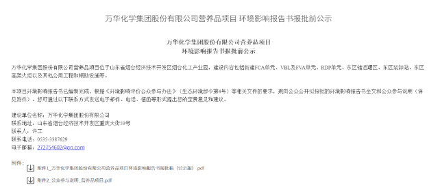 近期,萬華化學(xué)在其官網(wǎng)上連上了三個(gè)項(xiàng)目的環(huán)境影響評(píng)價(jià)公示信息,下面我們一起來看看吧!