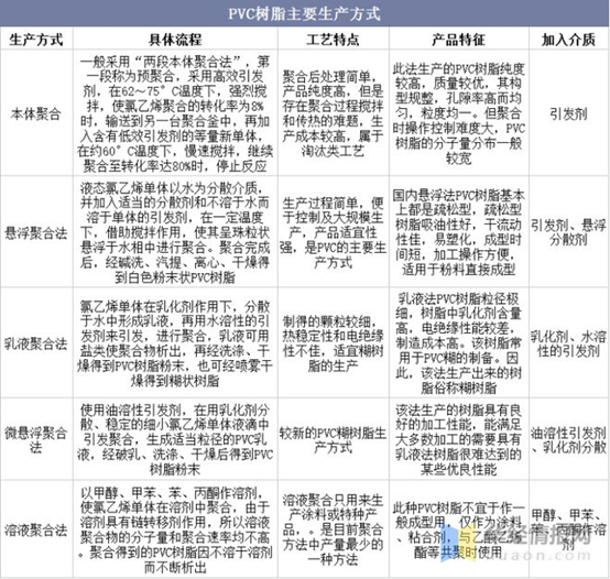 PVC樹脂的主要生產方式包括懸浮法、本體法、乳液法、溶液法和微懸浮聚合法。從世界范圍來看,懸浮法是PVC通用樹脂的主要生產方式,而PVC糊樹脂的生產方式為乳液法與微懸浮聚合法,因生產工藝不同,兩種樹脂產能無法實現相互轉換。