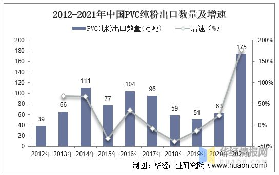 2021年,受國外貨源供應緊張且價格持續上漲支撐,中國PVC出口量明顯增加,但遠洋運力緊張的矛盾在下半年較為突出,限制中國PVC出口量的進一步增長。數據顯示,2021年全年,我國PVC純粉累計出口數量達175.4萬噸,同比上升177.8%。