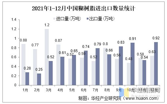 聚氯乙烯(PVC)糊樹脂顧名思義是此種樹脂主要以制成糊狀形式來應用,人們常用此種糊稱作增塑糊,是未加工狀態下的聚氯乙烯塑料的一種獨特液體形式。糊樹脂常由乳液和微懸浮法制得。根據海關總署數據,2021年12月當月,我國糊樹脂進口量為0.63萬噸,較2020年同期減少34.5%;12月當月,我國糊樹脂出口量為0.92萬噸,,較2020年同期大幅增長452.7%。