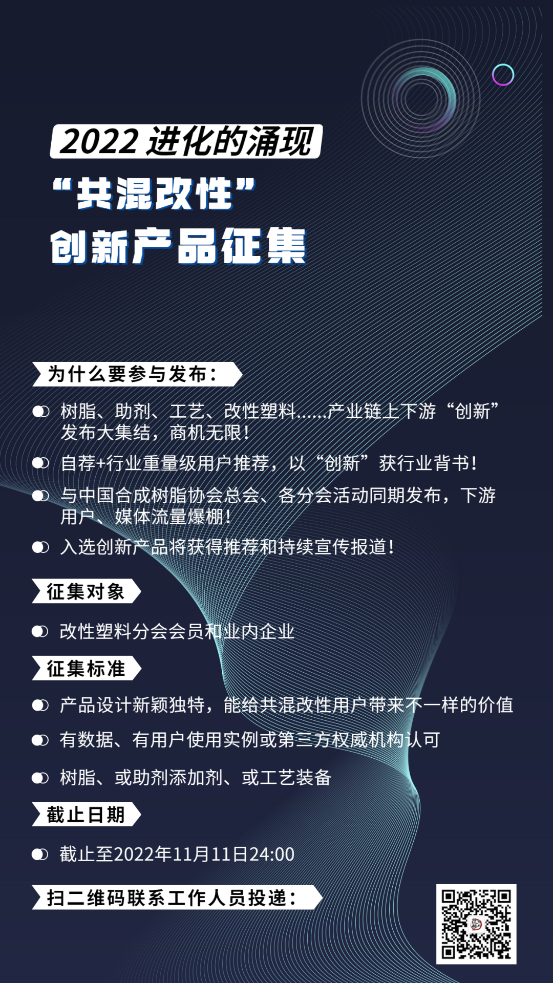 如果你覺得你的產品足夠創新,足夠新穎,能給共混改性用戶帶來不一樣的價值,你可以報名產品征集,我們期待在發布會上展示你的產品: