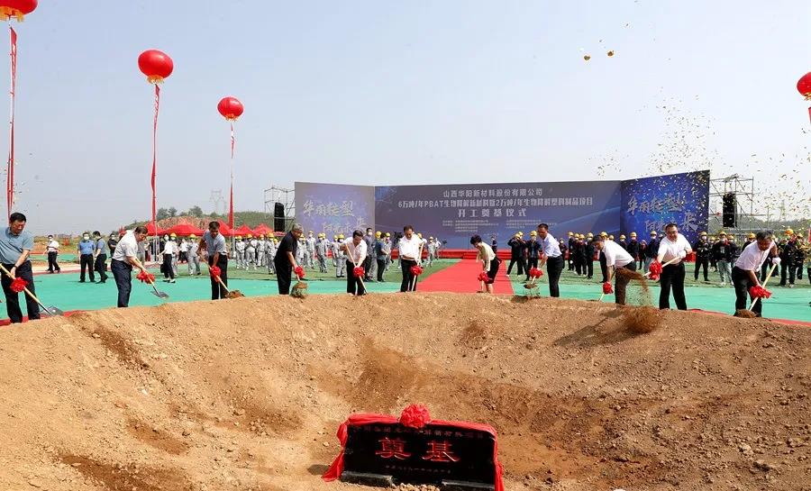 8月10日上午,山西華陽新材料股份有限公司6萬噸/年PBAT生物降解新材料暨2萬噸/年生物降解塑料制品項目開工奠基儀式在平定經開區龍川工業園舉行。