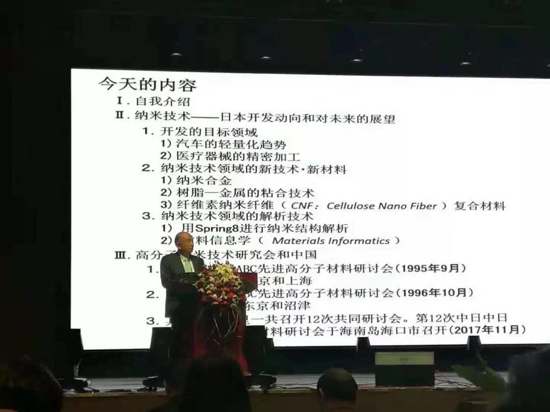 日本高分子納米技術研究會委員長伊澤楨一重點介紹了日本在納米技術領域的開發動向和對未來的展望。他從汽車輕量化趨勢和醫療器械的精密加工兩個目標領域出發,介紹了納米技術給這兩個行業帶來的巨大變化。他也介紹了納米技術領域的一些新技術,如納米合金、樹脂金屬的粘合技術、纖維素納米纖維(CNF)。